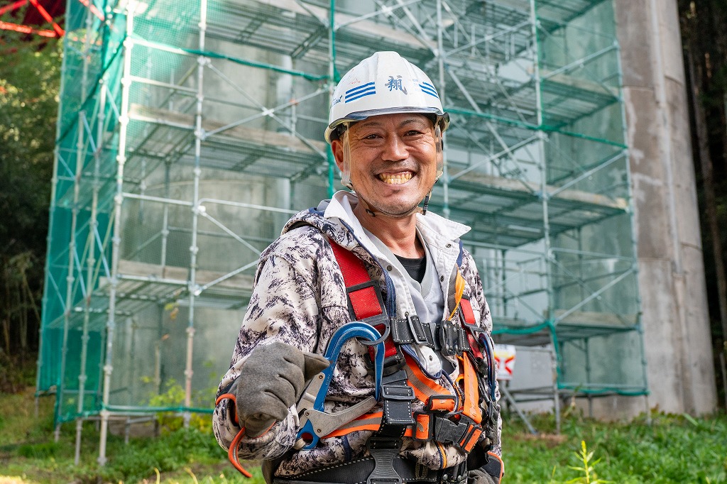 鳶職一筋で、今年で18年目になります。長く鳶職を続けてきましたが、鳶翔に入社を決めたキッカケは「将来のビジョンがしっかりと確立されている社長のもとで働きたい」と思ったからです。現場ではスイッチのオンオフをしっかり切り替え、オンの時は全力で頑張る仲間ばかり。仲間意識が強く、現場の大小に関わらず全員で作り上げていく達成感が、この仕事の大きな魅力だと改めて実感しています。